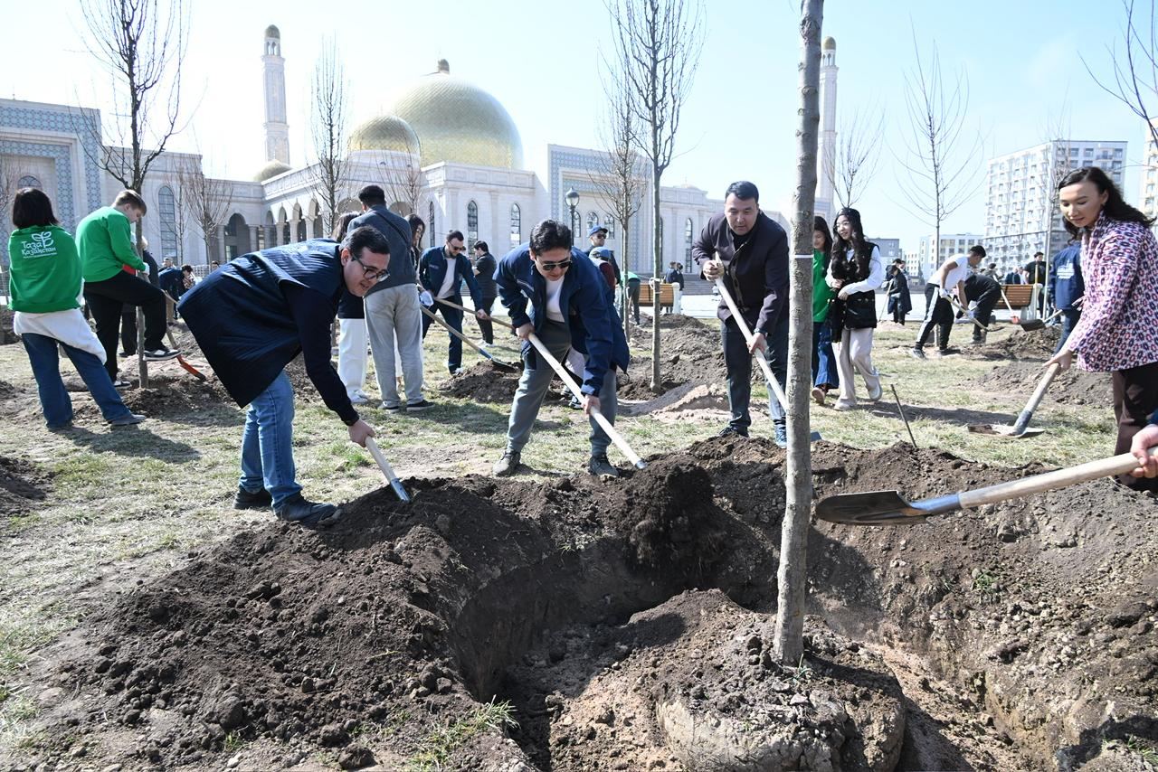 Молодежь, представители общественных объединений и жители города высадили более 300 крупномерных лиственных деревьев высотой от 6 метров в Алатауском районе.