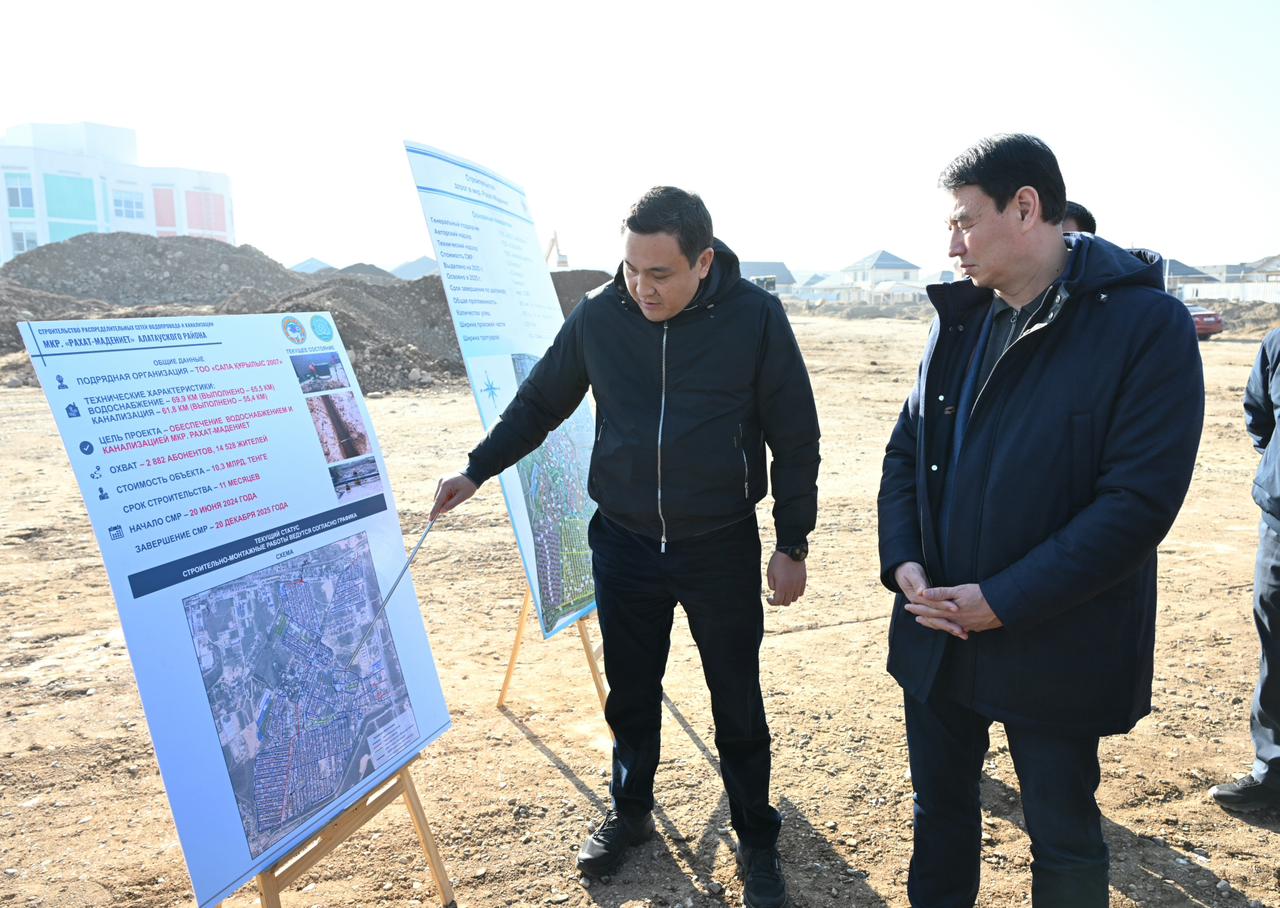 Аким Алматы Дархан Сатыбалды в рамках рабочего объезда посетил микрорайон «Рахат-Мадениет» и ознакомился с ходом реализации проекта по развитию инженерных сетей. Работы предусматривают строительство водопроводных и канализационных линий общей протяженностью 131,72 км.