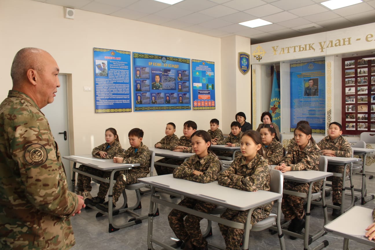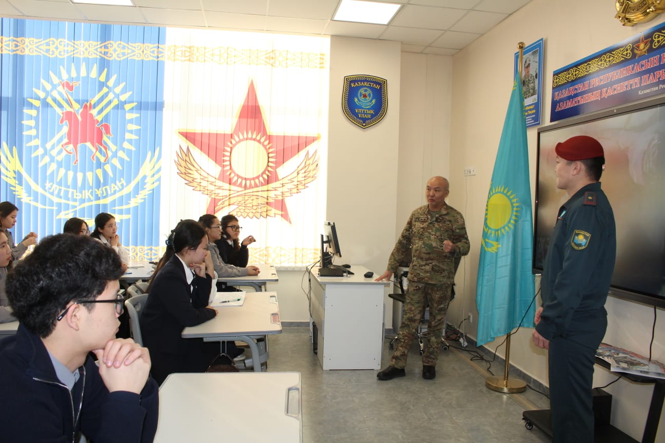 В «Уроке мужества» приняли участие школьники старших классов, проходящие начальную военную и технологическую подготовку, а также воспитанники класса «Жас сарбаз». Занятие прошло в классе «Ерлік сыныбы», названном в честь героев Национальной гвардии, и было организовано в формате открытого урока. Мероприятие провёл преподаватель начальной военной и технологической подготовки школы, полковник запаса Ниязтай Алкешев.