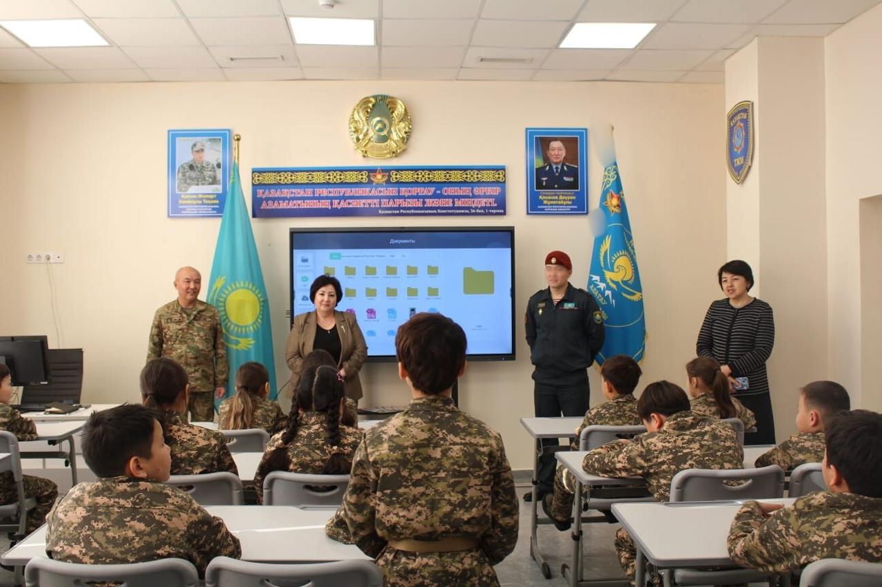 В ходе встречи школьникам был продемонстрирован документальный фильм, рассказывающий о подвиге майора Жандоса Баянбаева, после чего участникам мероприятия представили его жизненный и служебный путь. Затем гость провёл открытую беседу, рассказал о службе и проявленном мужестве, а также ответил на вопросы школьников.