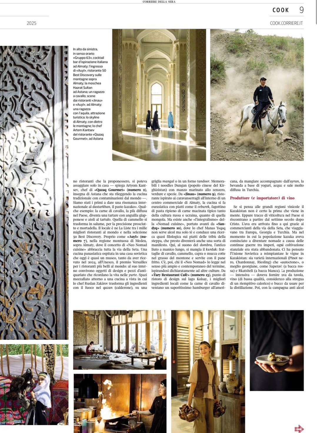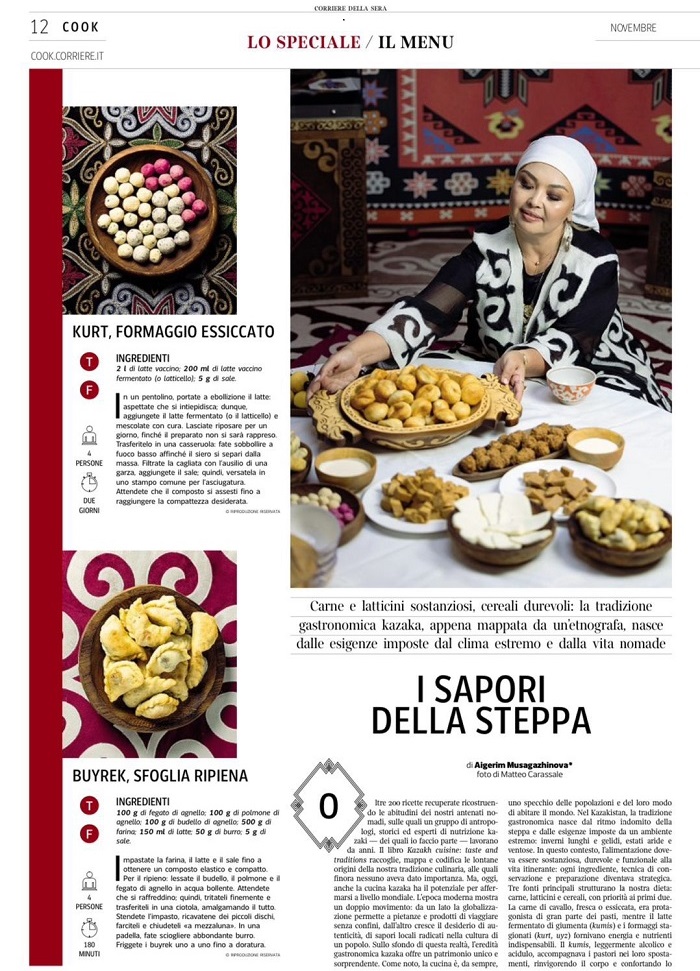 Итальянский гастрономический журнал COOK, входящий в состав одного из крупнейших изданий Италии – Corriere della Sera, опубликовал масштабный репортаж, посвящённый Казахстану. Особое внимание уделено Алматы как культурному и гастрономическому центру страны.