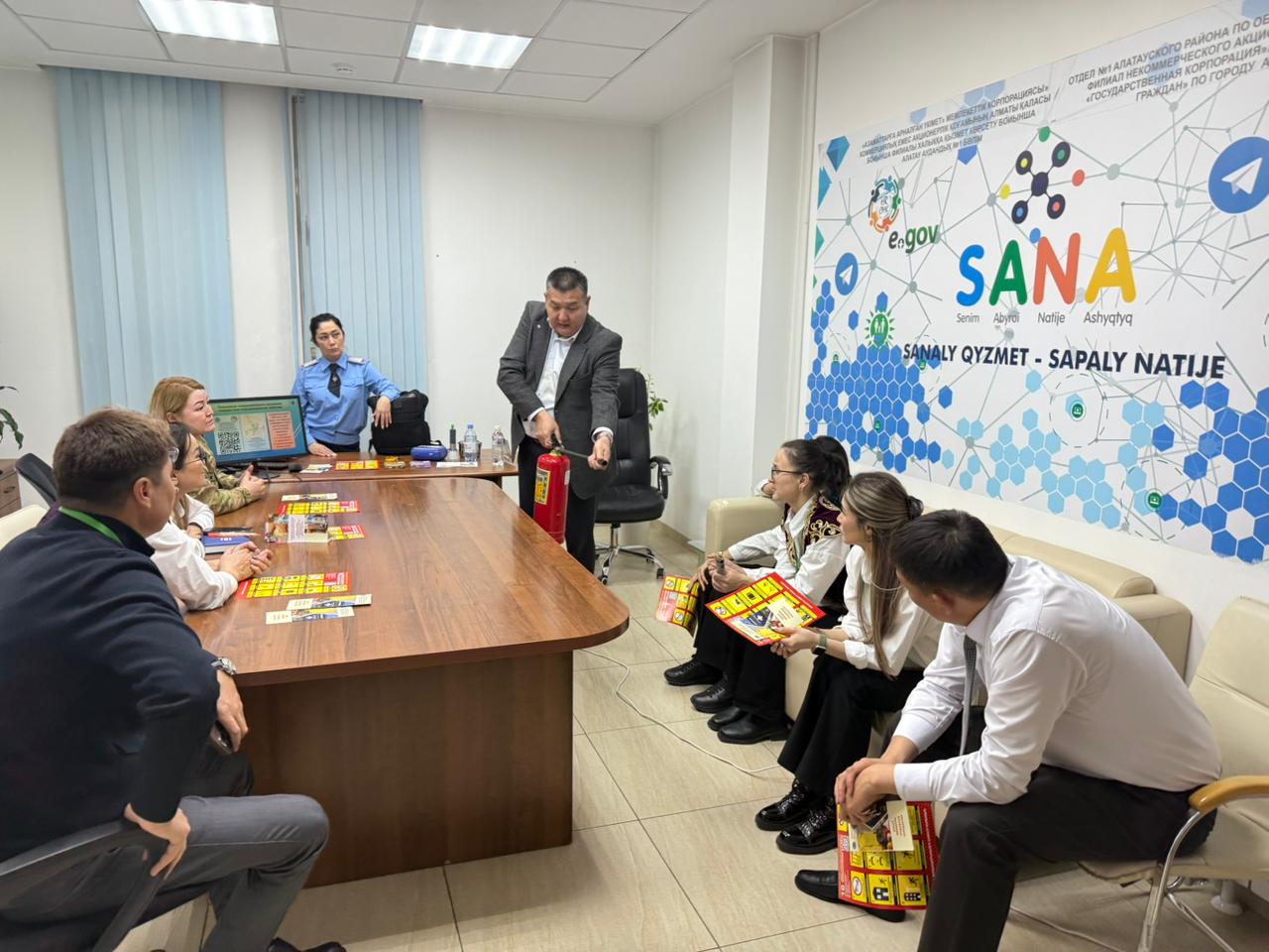 Отмечено, что Центры обслуживания населения ежедневно принимают до 5000 посетителей, предоставляя государственные услуги, в связи с чем, вопросы безопасности и готовности персонала к действиям в экстренных ситуациях имеют особую значимость.