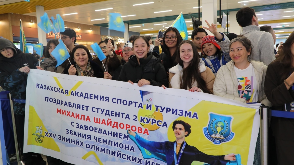 В алматинском аэропорту встречали чемпиона XXV зимних Олимпийских игр 2026 года по фигурному катанию Михаила Шайдорова.