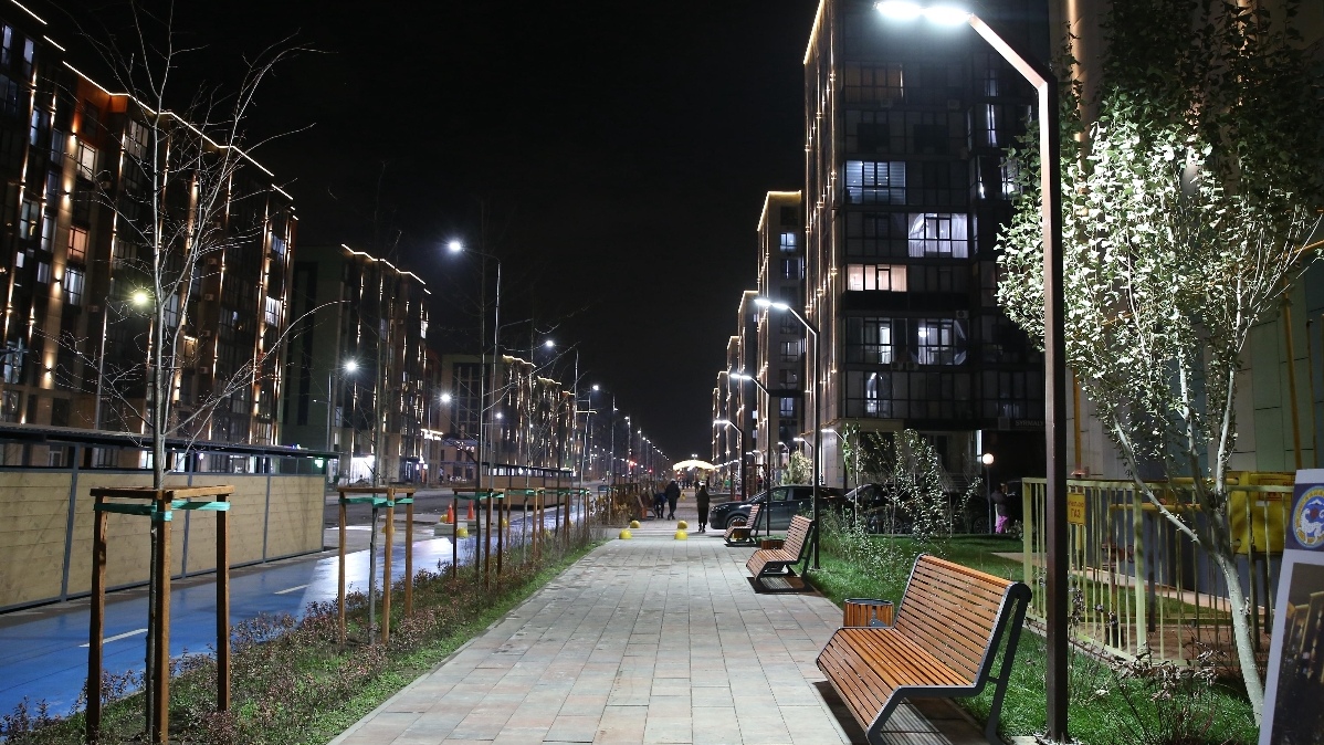 Освещение также установлено на девяти жилых домах по пр. Алатау и ул. Сабденова. Применено современное энергосберегающее оборудование, обеспечивающее равномерную подсветку фасадов и дворовых территорий. Реализация подобных проектов повышает уровень безопасности и комфорта в ночное время, а также формирует эстетичный облик новых жилых кварталов.