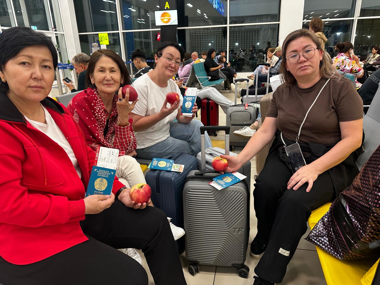 Путешествие началось с международной воздушной гавани Алматы. В багаже – чемоданы и символические подарки: ароматные яблоки апорта и фирменный шоколад с изображением государственной символики Казахстана. Уже в самолёте мы угощали соседей и это стало маленьким знаком дружбы.