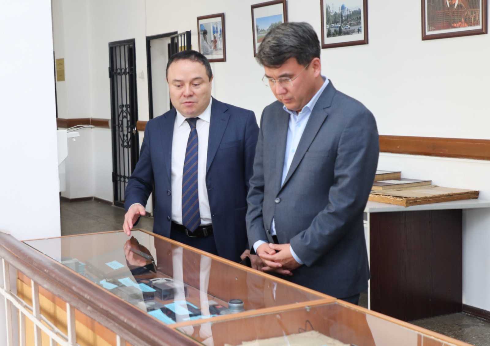 В рамках существующего меморандума медиахолдинг ежегодно принимает на работу студентов КазНУ в качестве работодателя. В ходе встречи Бакытжан Омаров ознакомился с деятельностью недавно открывшейся телестудии и с музеем-кабинетом медиахолдинга, имеющим многолетнюю историю.