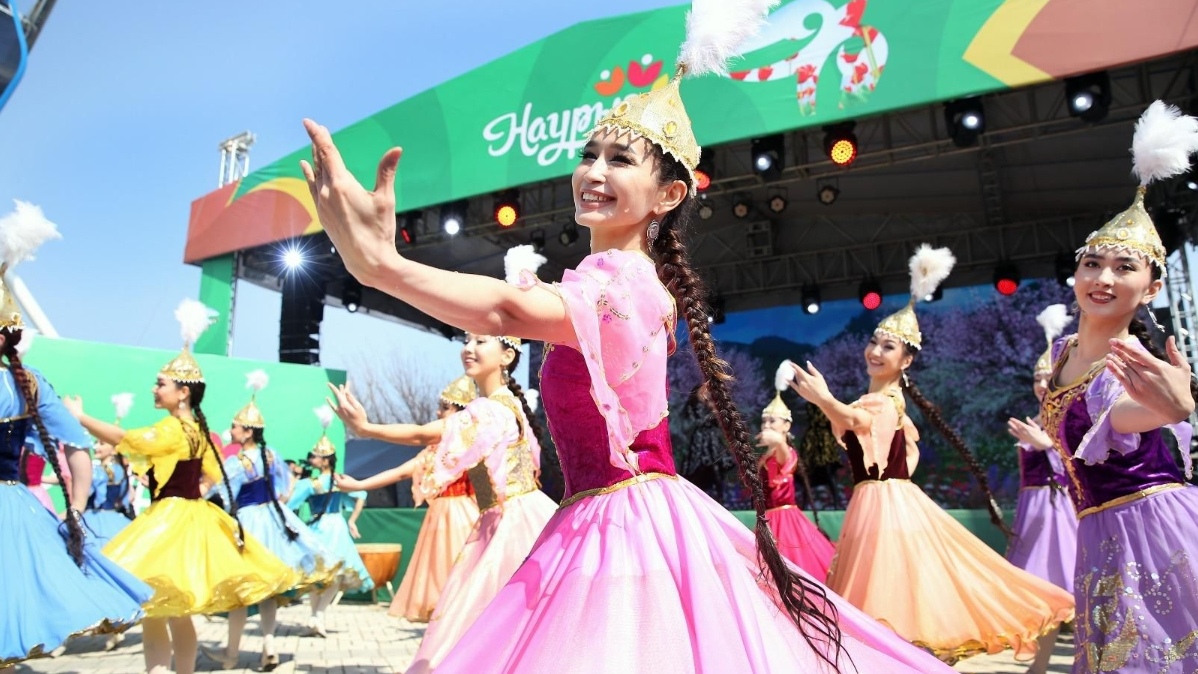 Праздничная программа продолжилась театрализованной постановкой, подготовленной артистами театра традиционного искусства «Алатау». В ходе постановки была показана древняя казахская традиция – обряд көрісу. Артисты приветствовали зрителей и обнимались с ними, тем самым подчеркивая значение этого дня.
