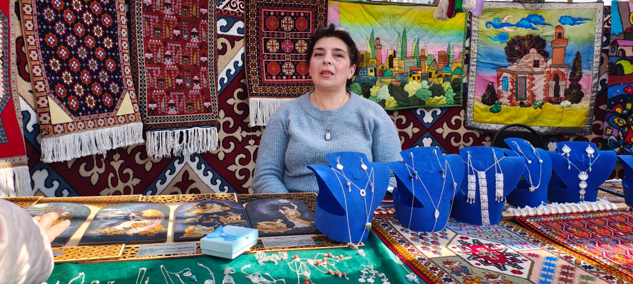 Особое внимание посетителей привлекают работы мастера из Азербайджана Тапдыговой Хатиры Кулу кызы. Она как архитектор-дизайнер и основатель культурного центра «Турбет» представляет уникальные произведения, выполненные в микромозаичной технике с использованием перламутра.