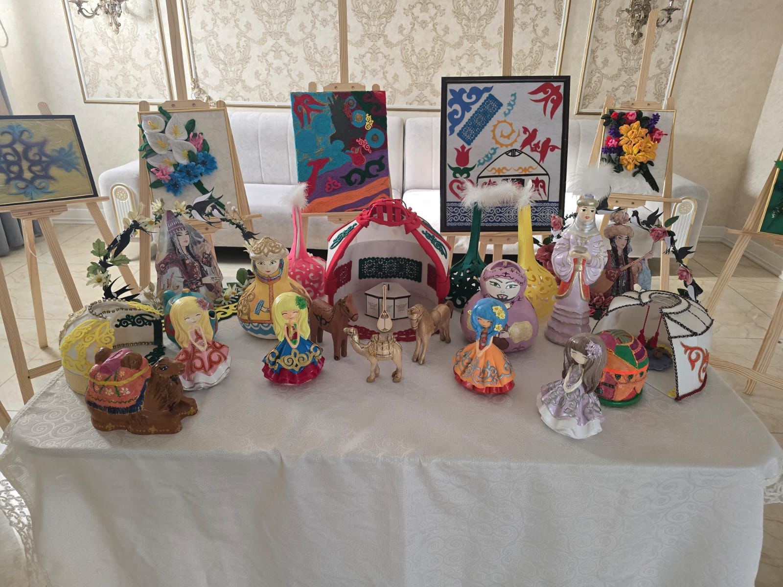 А также была выставка творческих работ получателей услуг. В экспозиции были представлены поделки, рисунки и изделия прикладного искусства, созданные руками детей. Каждая работа – это результат огромного труда, терпения и безграничной фантазии. Используя различные техники, ребята воплотили в своих произведениях образы весеннего обновления, национальных орнаментов и традиционного быта.