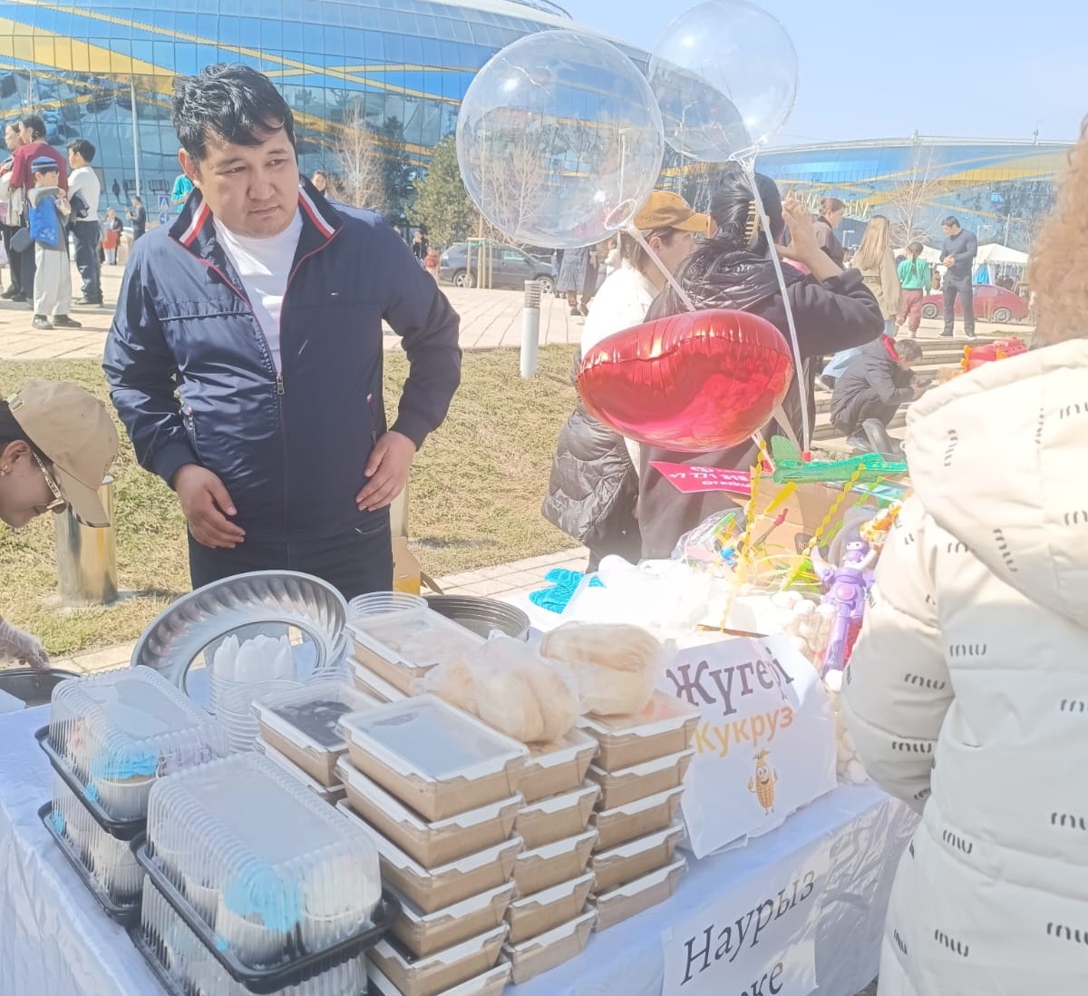 Особое внимание привлекли щедрые дастарханы. Жители Алатауского района приготовили главное блюдо праздника — наурыз коже, а также представили широкий выбор национальных угощений, которыми угощали всех желающих и предлагали на продажу.