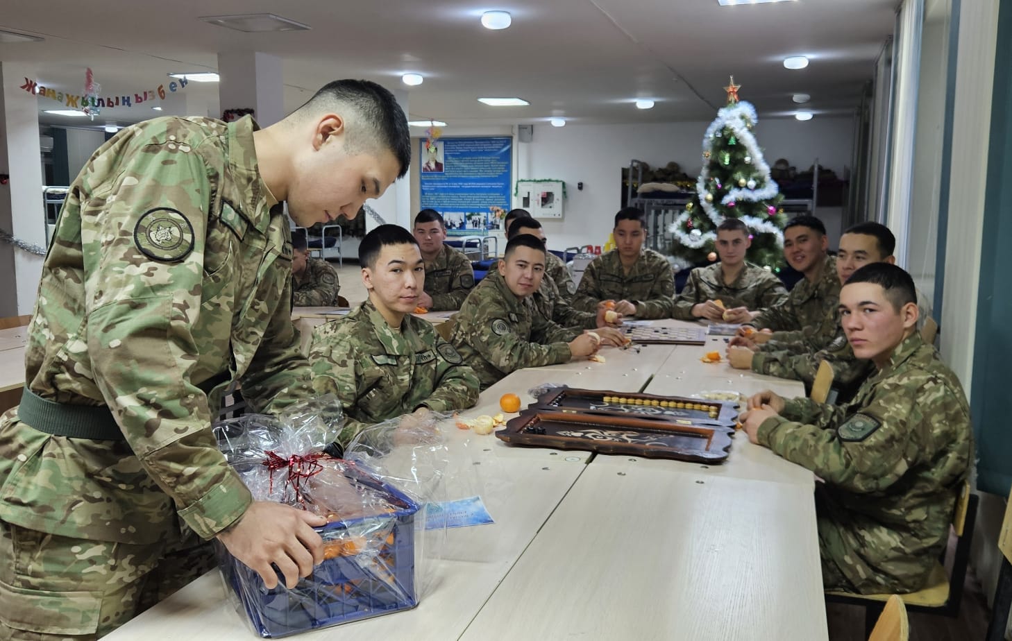 В воинской части 6654 города Алатау солдат Дастан Нурлан захотел создать праздничную атмосферу для всей роты и загадал на Новый год ящик мандаринов – символ уюта, тепла и новогоднего настроения. Получив посылку от Главнокомандующего Национальной гвардией, он не оставил подарок себе, а разделил его с сослуживцами, подарив радость всему подразделению.