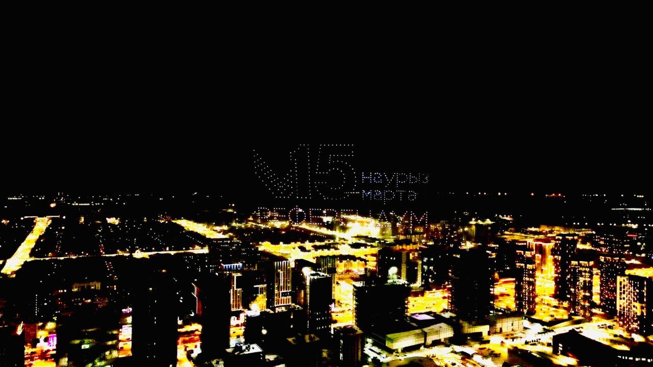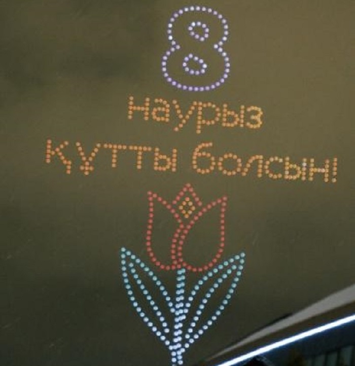 Завершением вечера стало зрелищное дрон-шоу. В ночном небе дроны золотыми и голубыми огнями выстроили контур карты Казахстана с надписью «ҚАЗАҚСТАН» в центре. Затем появилась надпись «Референдум» и дата его проведения - 15 наурыз / марта. Финальным элементом шоу стал шанырак – один из ключевых национальных символов Казахстана – с синей галочкой внизу, символизирующей ответственное решение и единство страны.