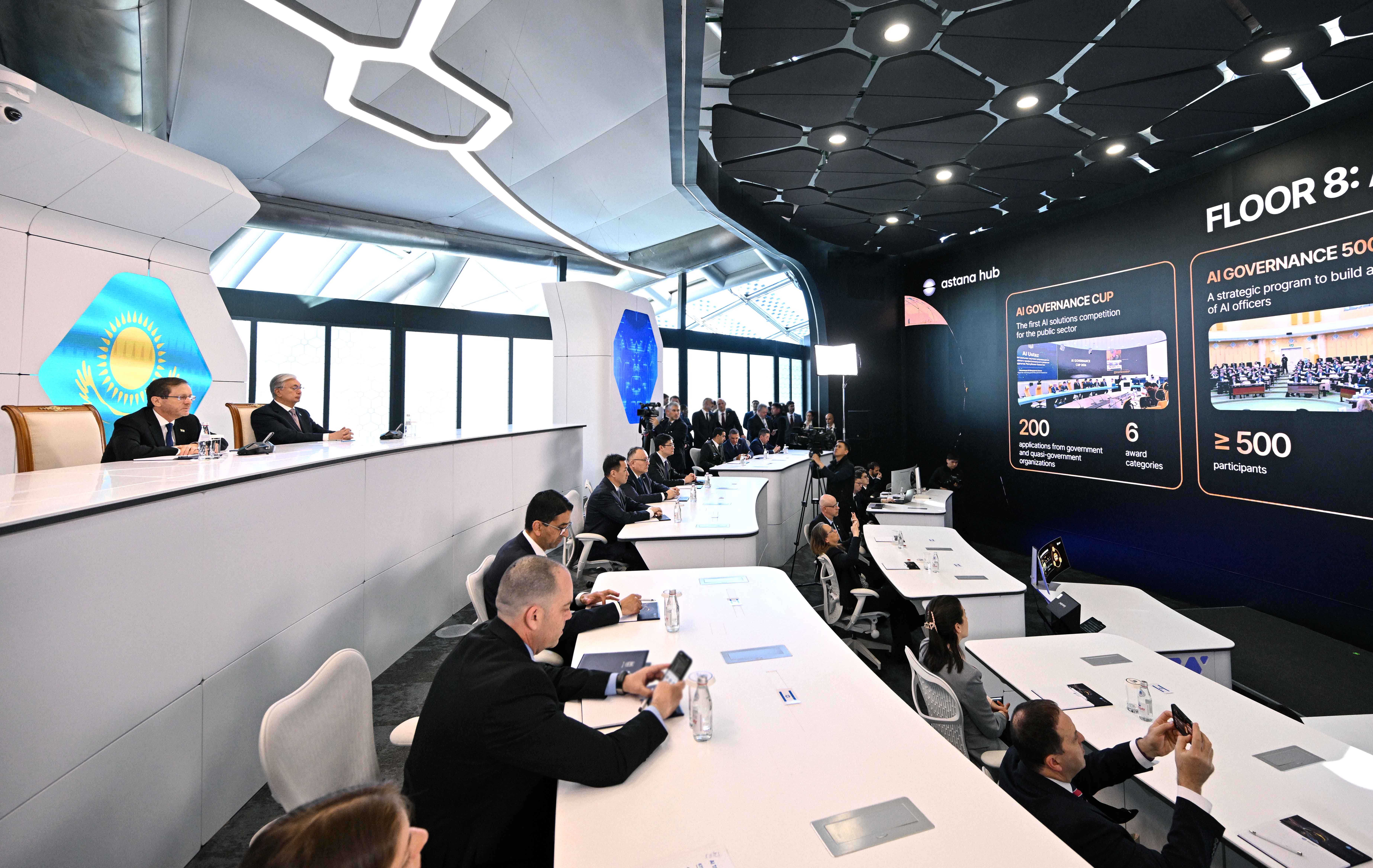 Касым-Жомарт Токаев и Ицхак Герцог ознакомились с работой центра Alem.ai, в котором формируется полный цикл развития технологий – от раннего выявления и подготовки талантов до глобального масштабирования ИИ-решений.