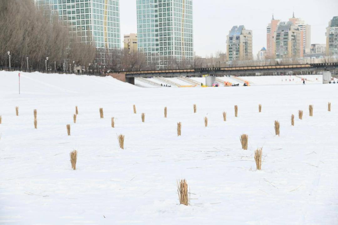 «На текущий момент установлены снопы из камыша. Работы завершены на четырех участках реки от моста «Аркар», до моста «Марал», от моста «Қараөткел» до пешеходного моста «Атырау», от пешеходного моста «Серуен» до моста «Тулпар», а также от моста «Тулпар» до района газовой аппаратуры. Всего обустроено 16 прорубей, 840 лунок и 32 майны», — добавила представитель управления.