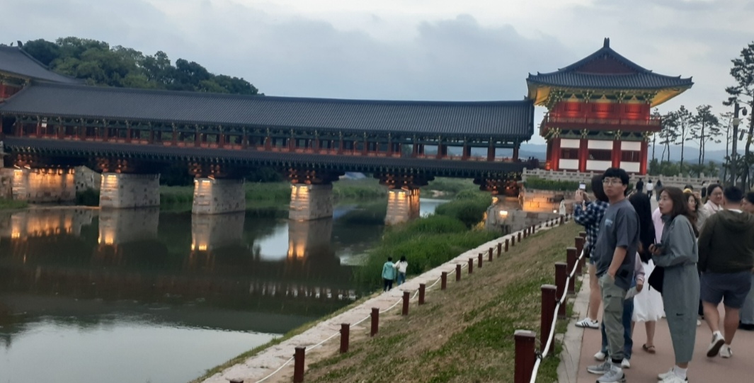 Древний деревянный мост Вольчонгё, построенный в средние века, лучше посещать в вечернее время, когда он переливается яркими огнями. Также для туристов может быть интересным дворцовый комплекс Донггун вольчжи, нависающий над прудом. В эпоху корейского царства Силла они использовались королевской семьей для торжественных мероприятий и почетных переговоров.
