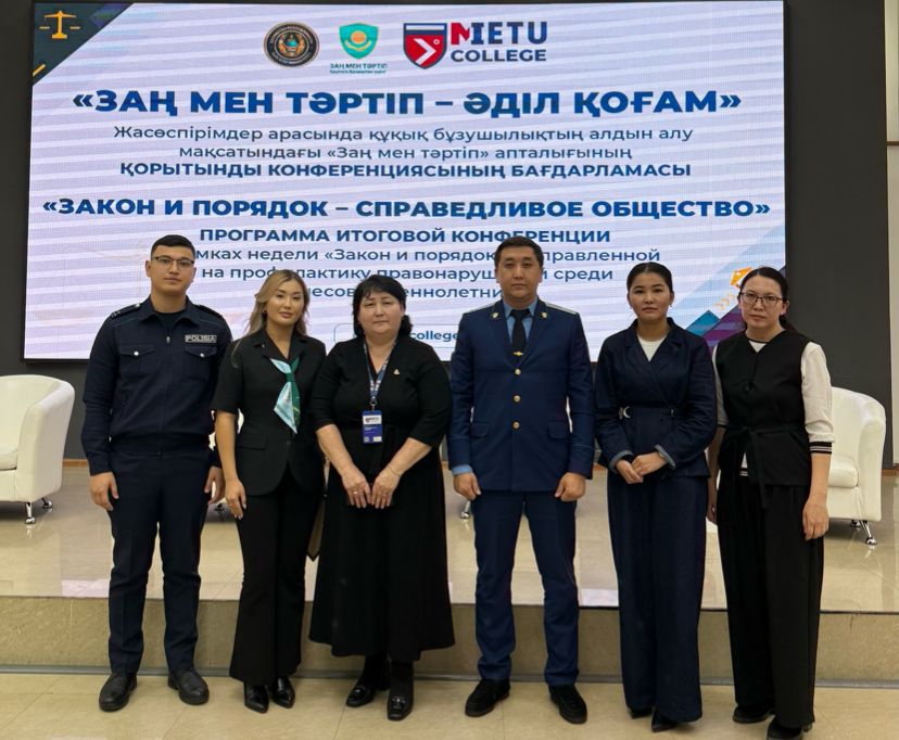 В колледже Международного инженерно-технологического университета города Алматы состоялась итоговая конференция на тему «Закон и порядок – справедливое общество». Мероприятие было организовано в качестве итогового события недели «Закон и порядок» и посвящено вопросам профилактики правонарушений среди подростков, формирования правовой культуры и укрепления психологической безопасности.