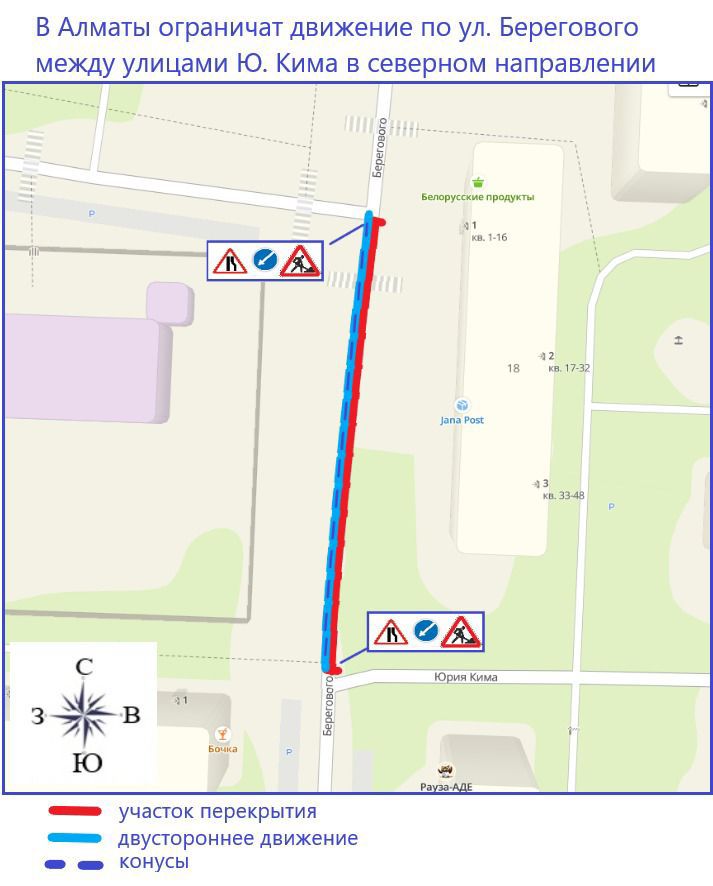С 09:00 27 ноября до 18:00 28 ноября движение автотранспорта будет частично ограничено на пересечении улиц Берегового и Кима в северном направлении. Движение в южном направлении останется открытым.