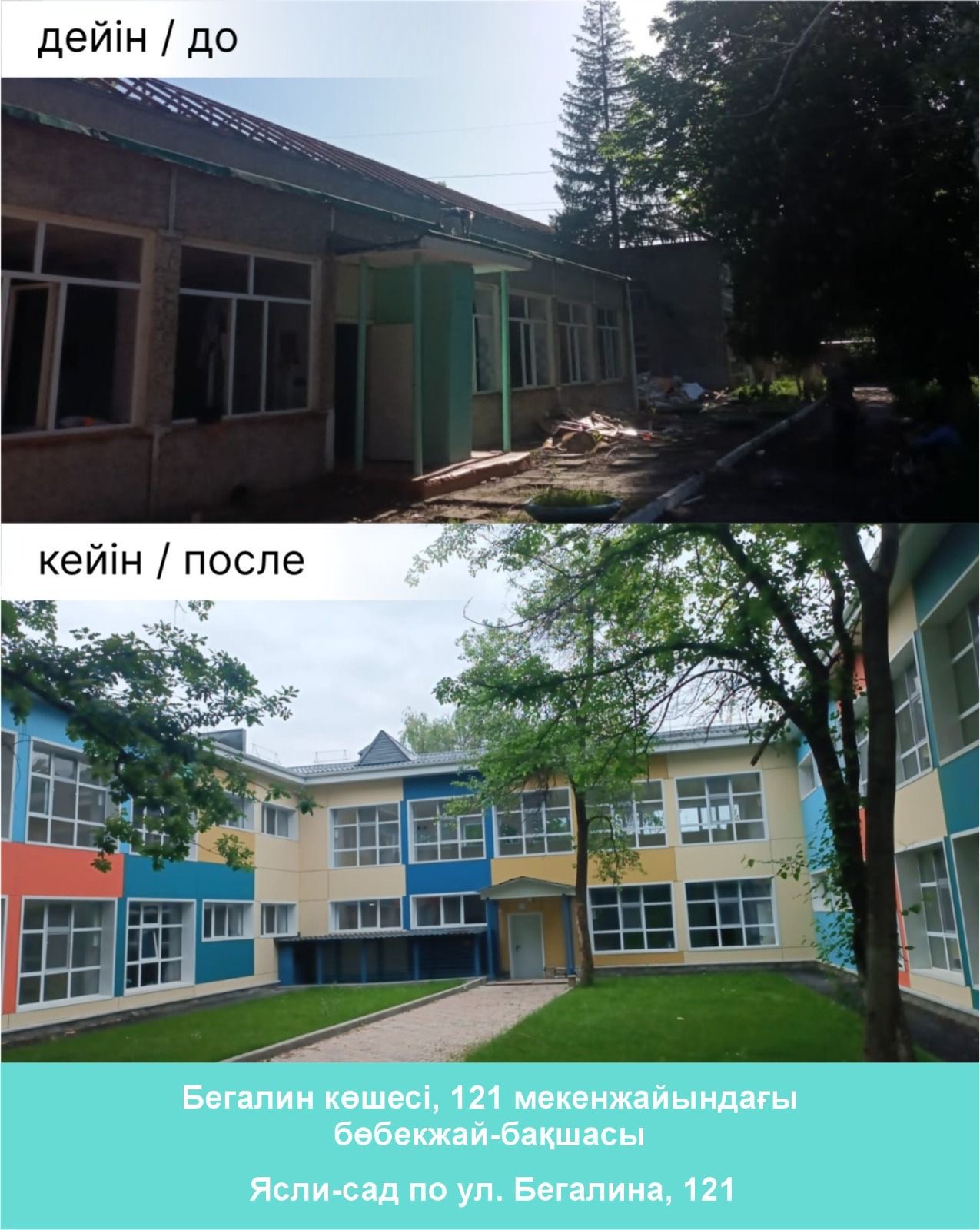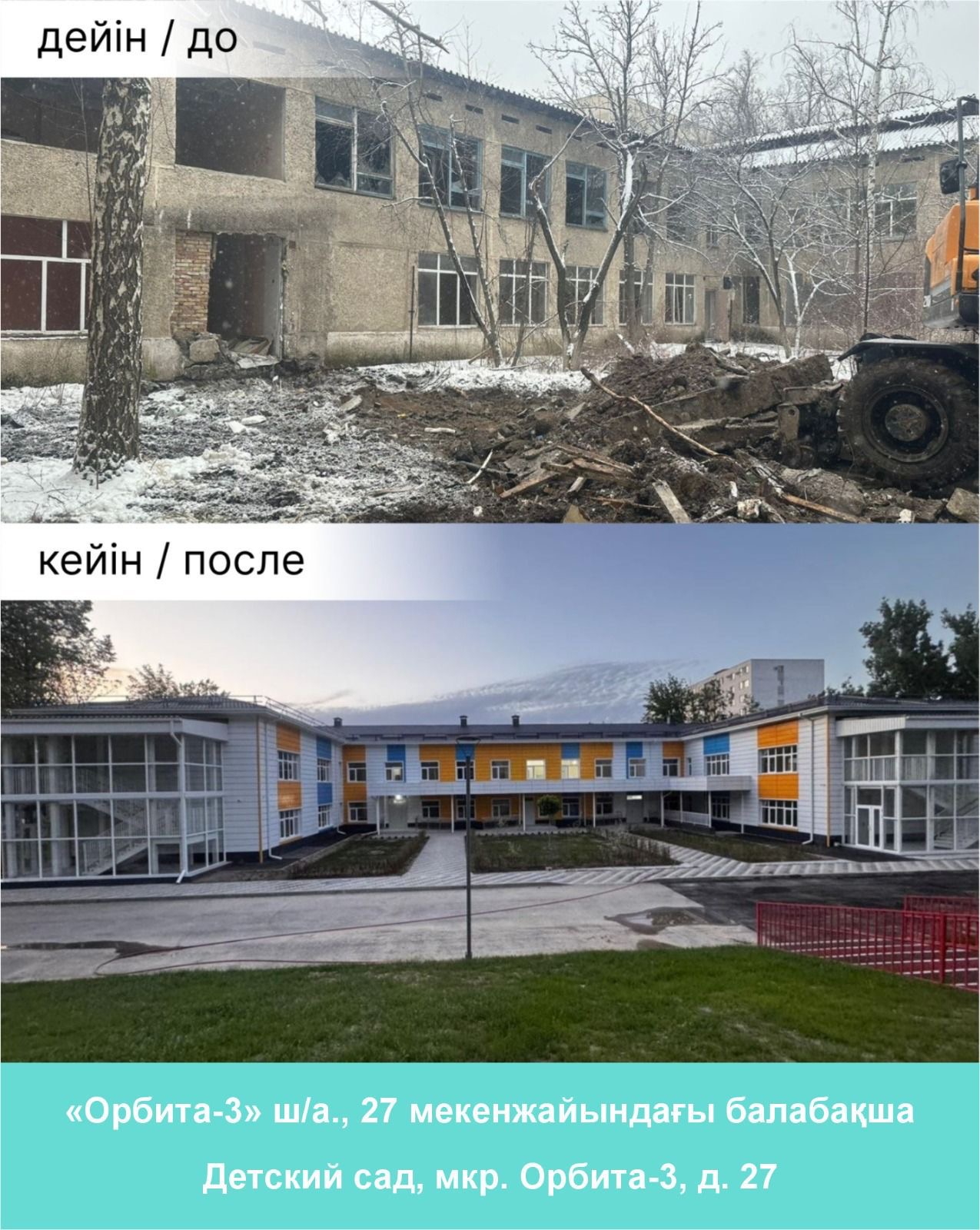 В Бостандыкском районе выполнены работы по сейсмоусилению и капитальному ремонту Коррекционного ясли-сада №137 для детей с нарушениями слуха и ясли-сада №87. Проведена также реконструкция здания под детский сад на 240 мест. Обновленные учреждения оснащены современными групповыми помещениями, залами для музыкальных и физкультурных занятий, медицинскими и бытовыми блоками. Все здания полностью адаптированы для комфортного и безопасного пребывания детей.