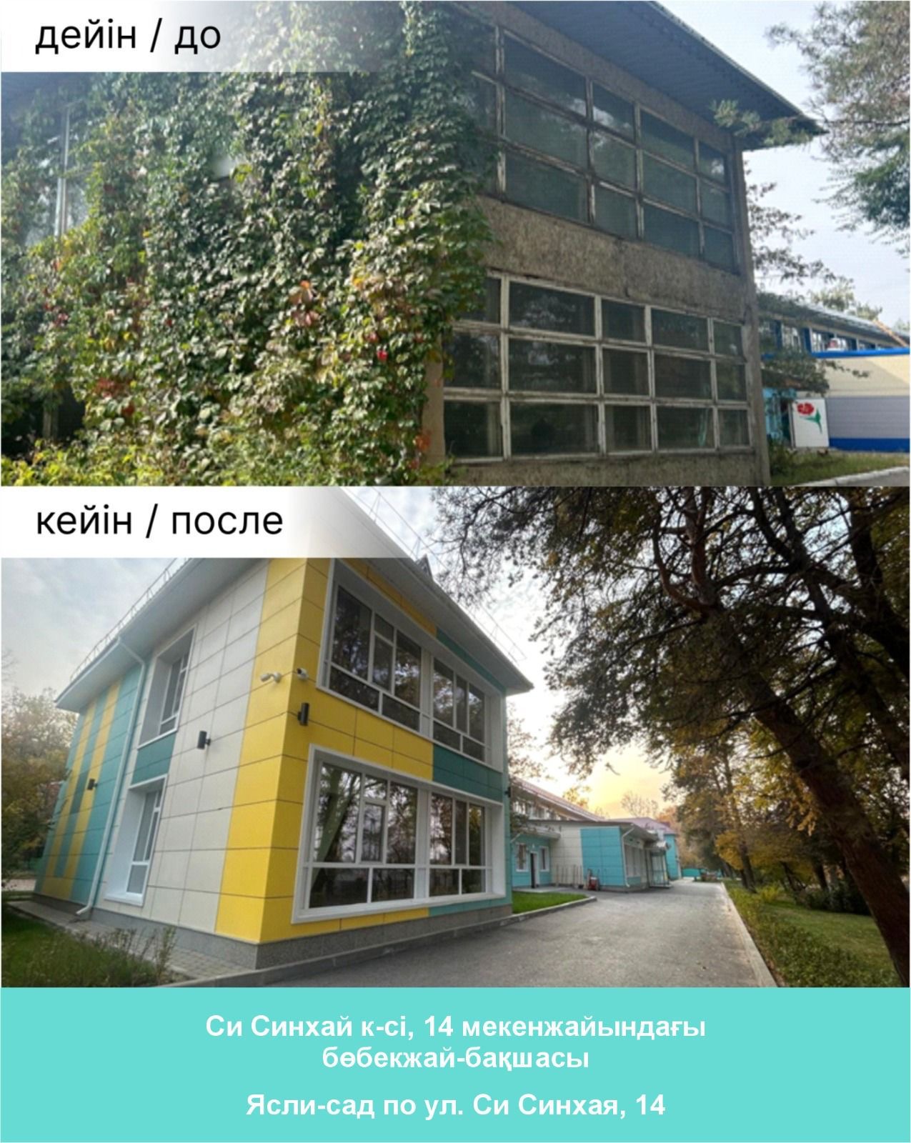В Медеуском районе завершен капитальный ремонт с сейсмоусилением здания ясли-сада, в котором обновлено внутреннее пространство, созданы комфортные условия для воспитанников и педагогов, оборудованы игровые и спальные комнаты, пищеблок и медицинский блок.