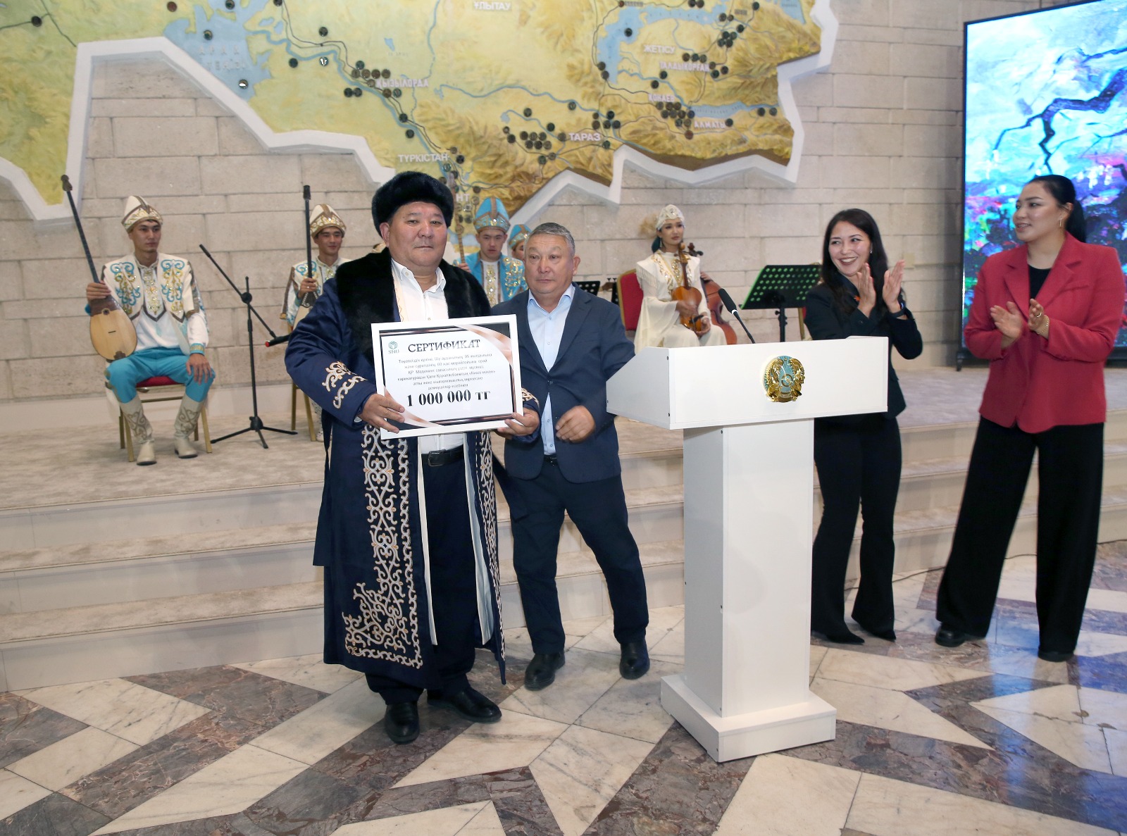 Благодаря его работам в Национальном центральном музее РК в эти дни можно проникнуться духом степи. Посетителей экспозиции, размещенной на третьем этаже, встречает вырезанный из камня хранитель бескрайних просторов. Его, как и акварельные полотна, раскрывающую душу, культуру и традиции казахской земли, мастер создал сам. Он работает в разных стилях и техниках.