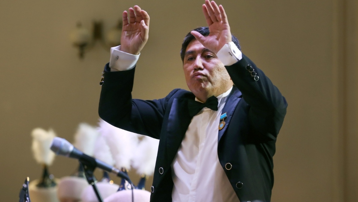 Главный дирижёр оркестра — кавалер ордена «Құрмет» Абылай Тлепберген.