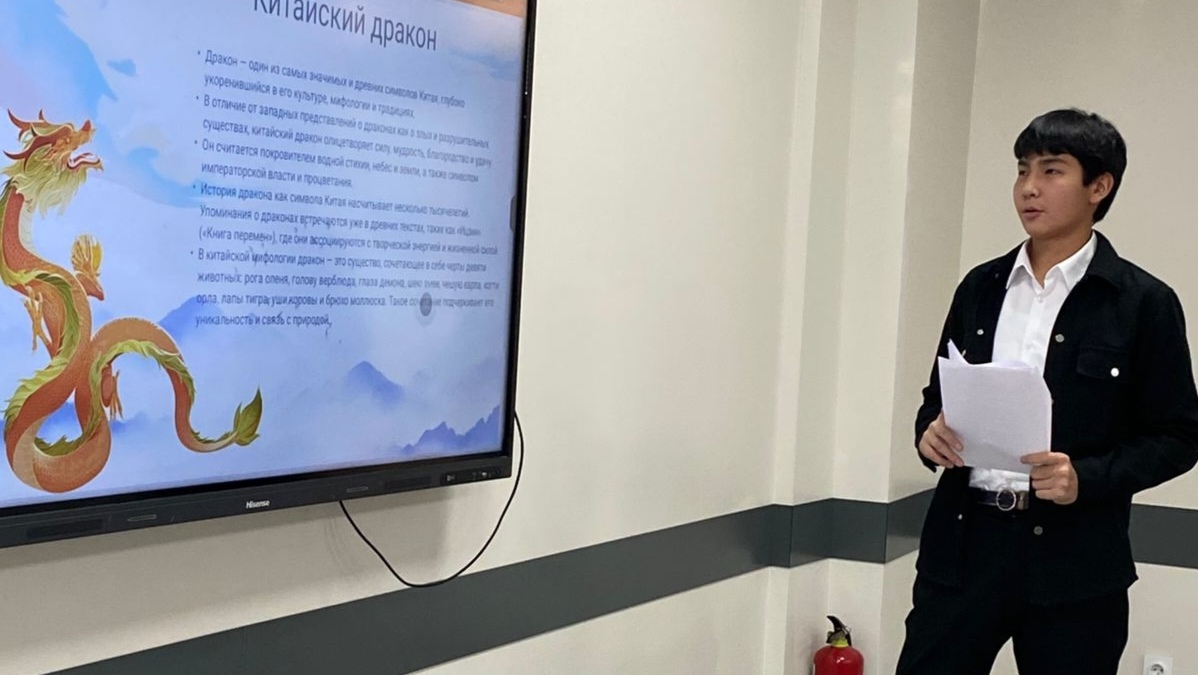 – Китайская культура насчитывает тысячелетия истории и оказывает огромное влияние на мировую цивилизацию. Ее символы занимают центральное место. Они служат способом передачи ценностей, исторической памяти, религиозных и моральных установок. К примеру, дракон является одним из самых значимых и древних символов Китая. Он олицетворяет силу, мудрость, благородство и удачу. Считается покровителем водной стихии, небес и земли. Далее птица феникс – это не просто красивая птица из мифов, а целый культурный символ, история которого насчитывает более 4 000 лет. Его связывают с огнем, солнцем, урожаем, теплом и процветанием. Третий символ – журавль. Он стал символом долголетия и духовной чистоты. В декоративном искусстве его изображали рядом с сосной. Особое очарование появляется там, где эти три символа встречаются вместе. Получался целый визуальный «код счастья», который объединил власть, гармонию и долголетие. Эти образы живут в архитектуре, поэзии, живописи, народных выражениях и в повседневной речи, - поделился студент АКСиТ Мұхамметжан Бауыржанұлы.