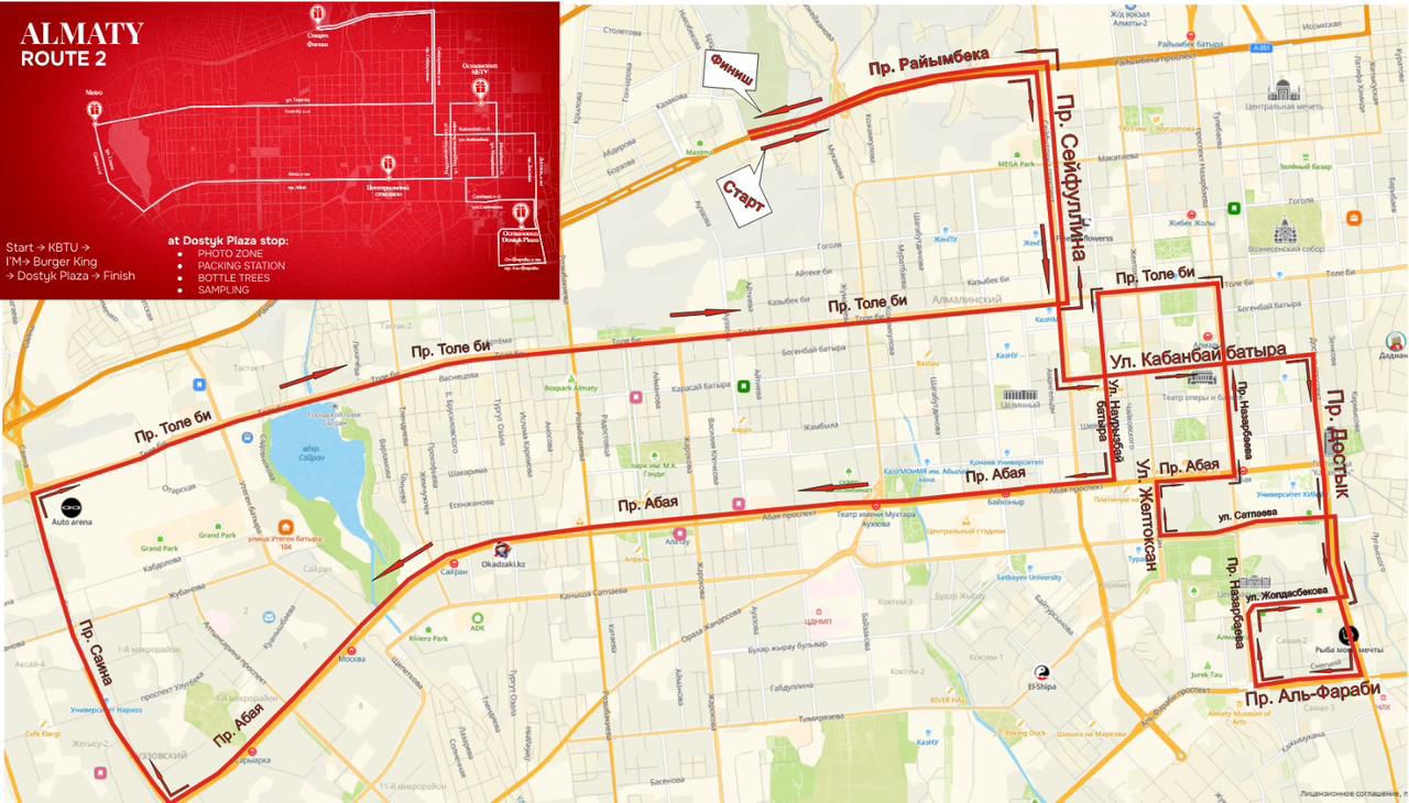 Центральной точкой маршрута станет площадка перед ТРЦ Dostyk Plaza, где будет организована новогодняя деревня. Для посетителей предусмотрены тематические фотозоны, зона сэмплинга, упаковочная станция и интерактивные активности для семейной аудитории. В ряде центральных локаций города также появятся праздничные инсталляции и мини-активации с дегустацией продукции бренда.