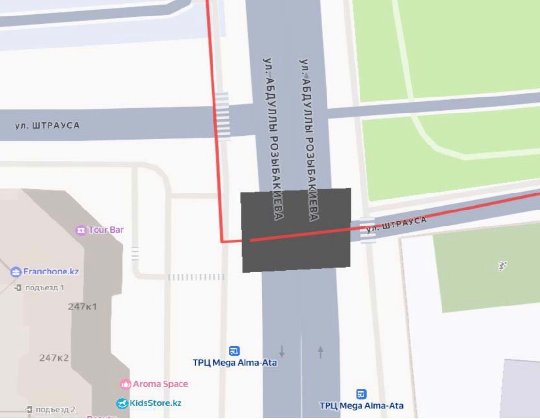 С 00:00 до 06:00 11 апреля 2026 года на перекрестках улицы Розыбакиева — Штрауса и Розыбакиева — Жандосова будет частично ограничено движение автотранспорта.