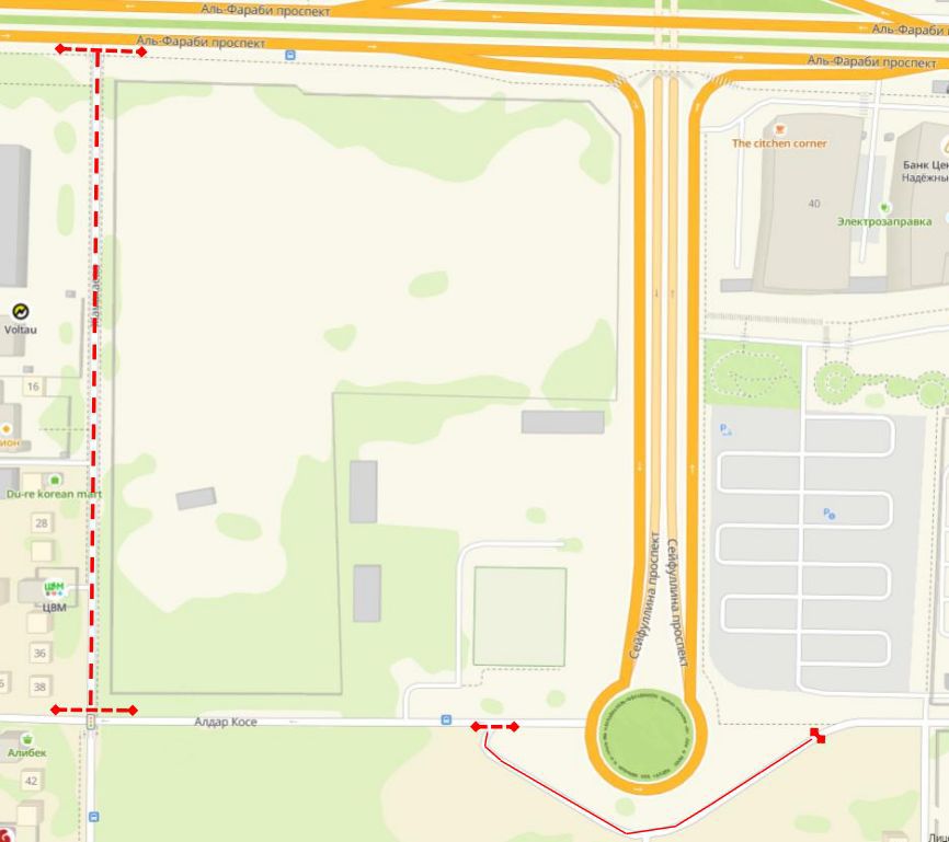 Проект предусматривает строительство магистральной водопроводной сети для жителей Медеуского района. Объезд участка будет организован: с западной стороны – через пр. Сейфуллина, и с южной стороны – через ул. Алдар Косе.