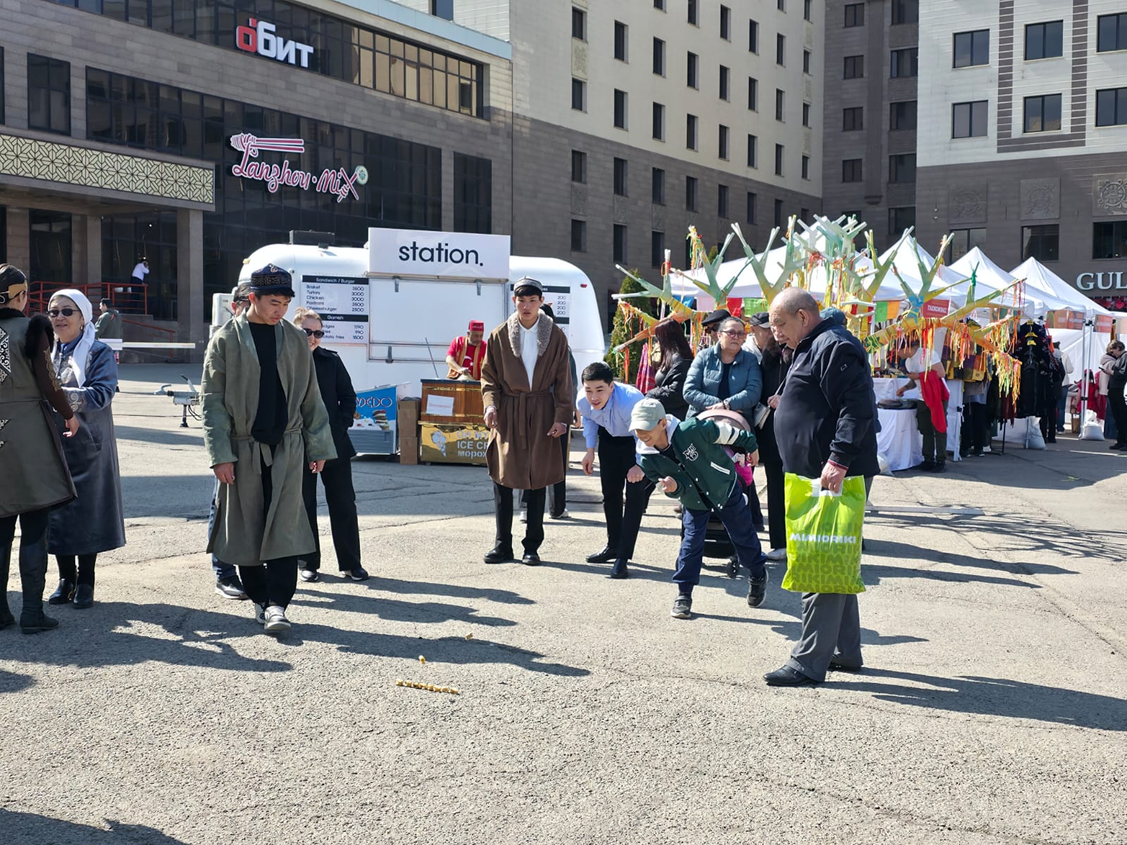 Традиционные элементы праздника также получили экологическую интерпретацию. В установленных юртах проводились мастер-классы по вторичному использованию материалов, где гостей учили давать новую жизнь старым вещам. На площади работали ремесленники, предлагавшие посетителям посуду, украшения и одежду ручной работы. Для любителей активного отдыха установили качели алтыбакан, безопасность на которых обеспечивали волонтеры, а многочисленные точки питания предлагали гостям разнообразные блюда и напитки.