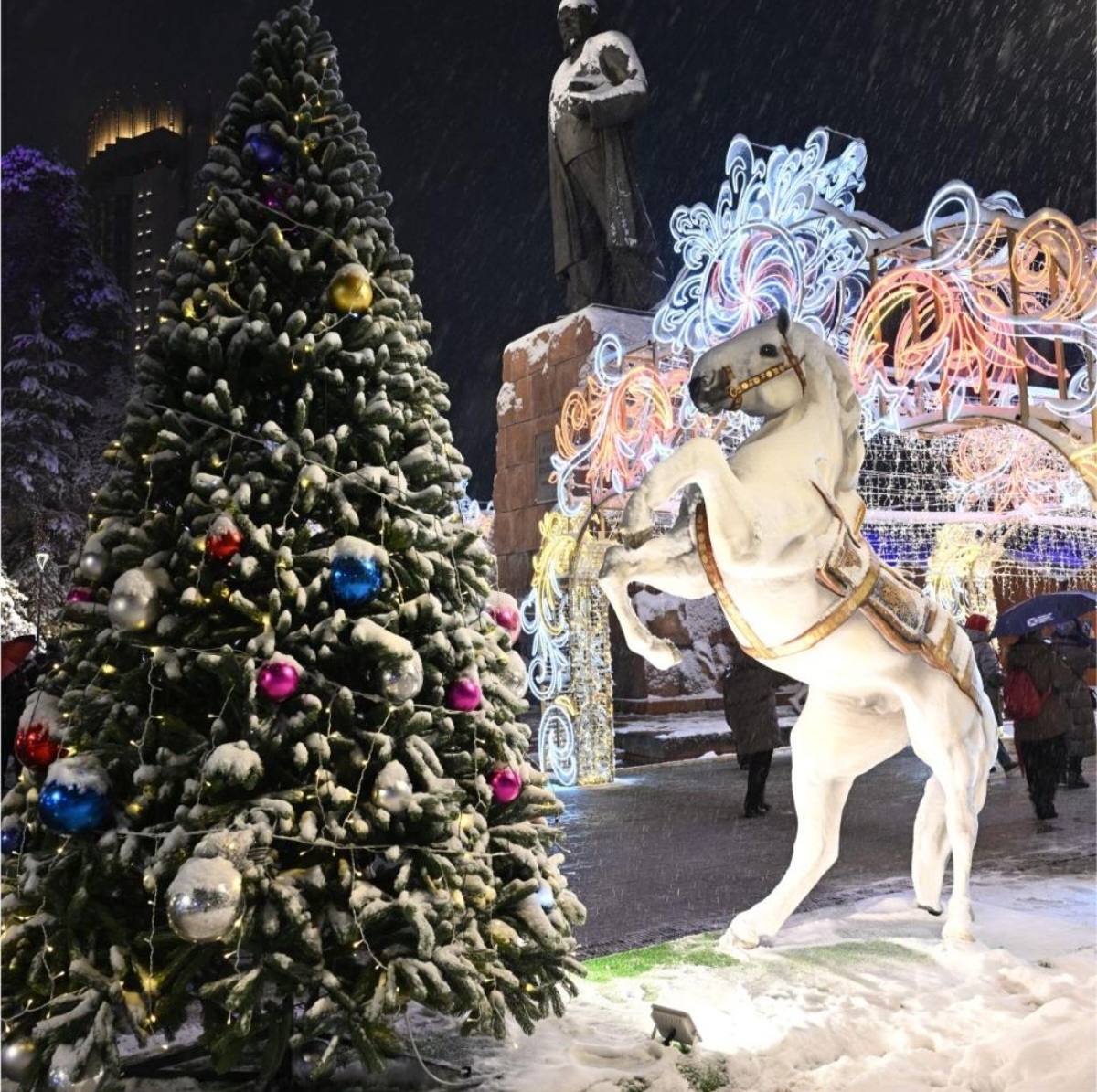 18 декабря во всех районах Алматы одновременно зажглись огни новогодних ёлок. Центральное праздничное мероприятие состоялось на площади Абая перед Дворцом Республики, где была установлена главная ёлка города высотой 22 метра. В предновогодней церемонии принял участие аким Алматы Дархан Сатыбалды и сотни алматинцев.