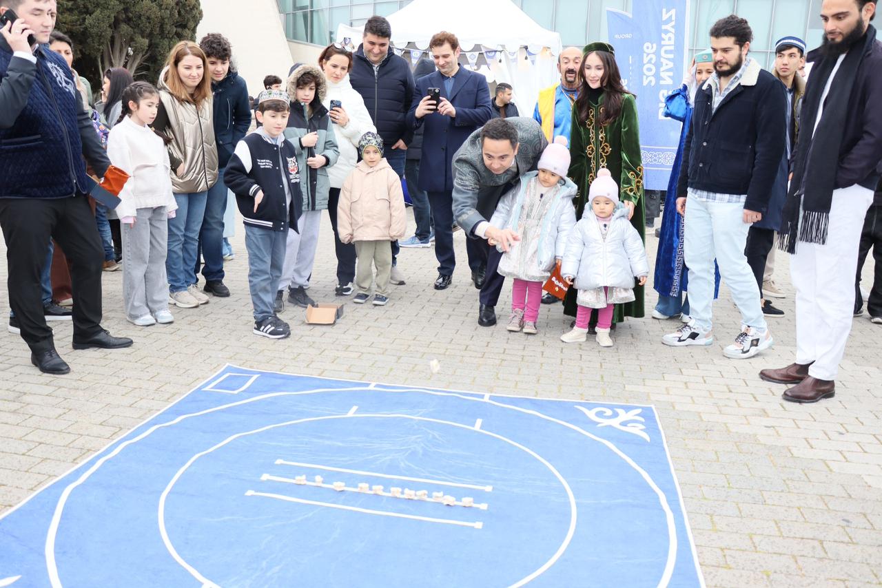 Интерактивная часть включала в себя познавательные конкурсы на знание общих корней казахского и азербайджанского языков, а также национальные спортивные состязания – «арқан тарту» и «асық ату».