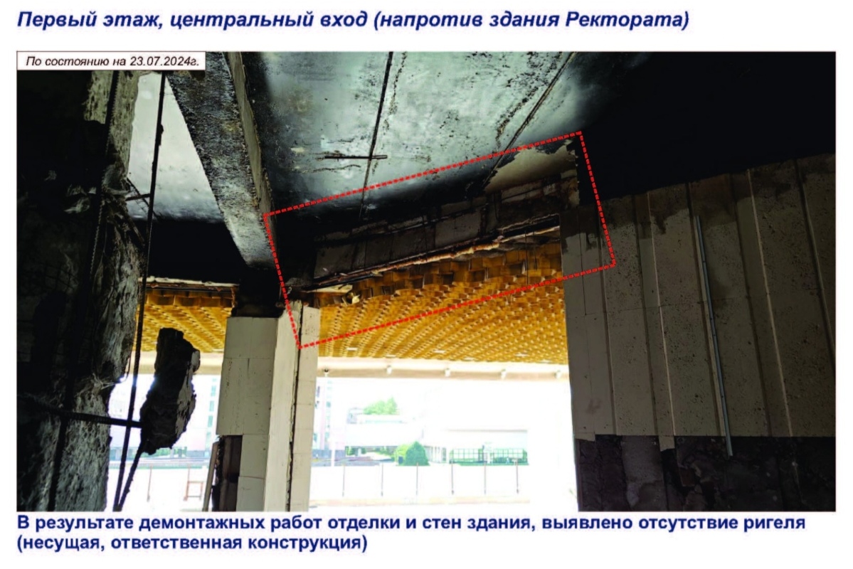 С учётом выявленных повреждений и сейсмических рисков университет принял решение о проведении комплексной реконструкции с сохранением архитектурного облика и обеспечением конструктивной надёжности и безопасности здания.