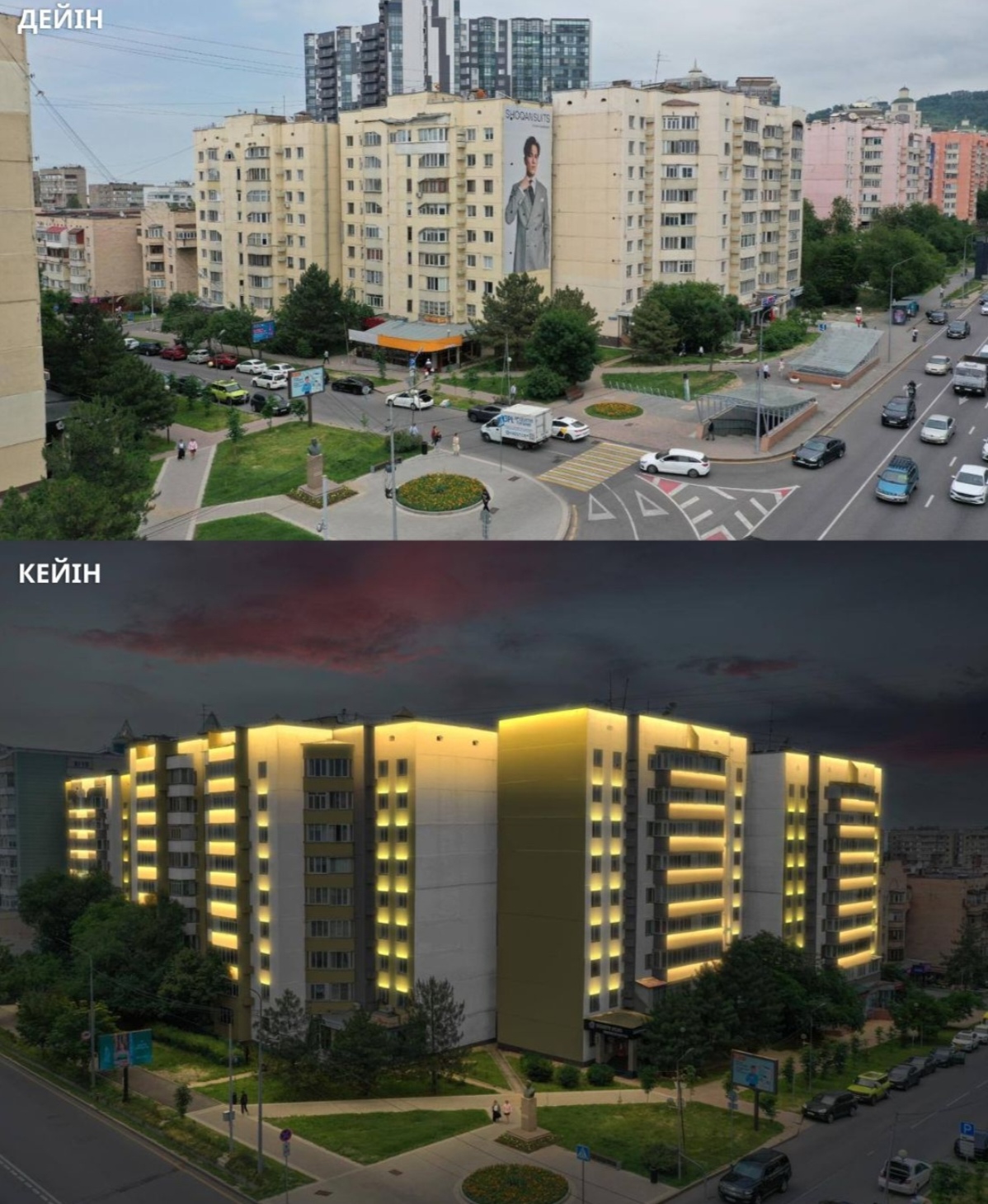 В Медеуском районе Алматы ведутся работы по обновлению фасадов и установке архитектурного освещения многоквартирных домов. Проект стартовал в июне и уже сегодня меняет облик района.