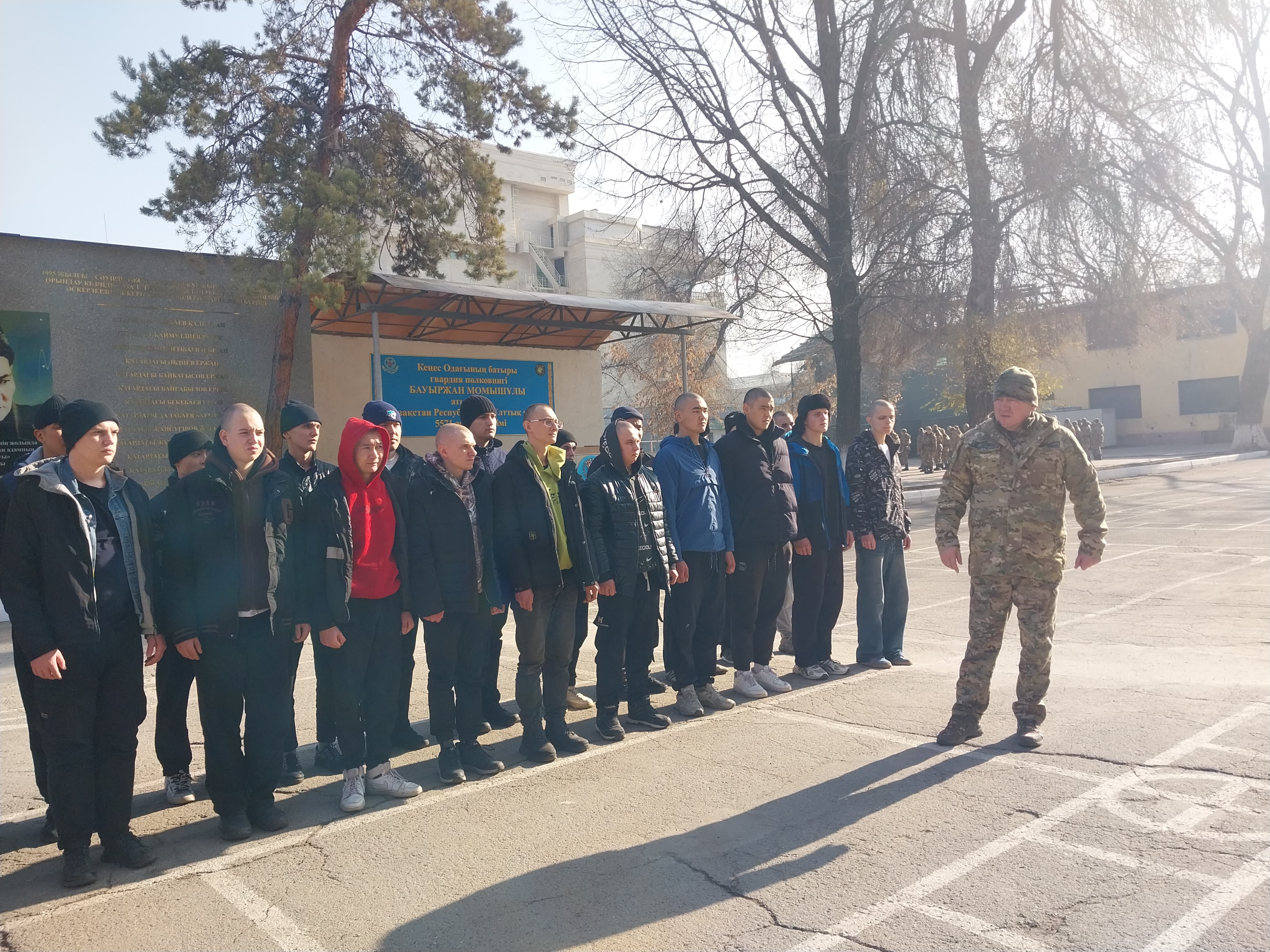 Первая группа новобранцев прибыла из городов Караганды и Актобе. Личный состав воинской части торжественно встретил молодое пополнение.