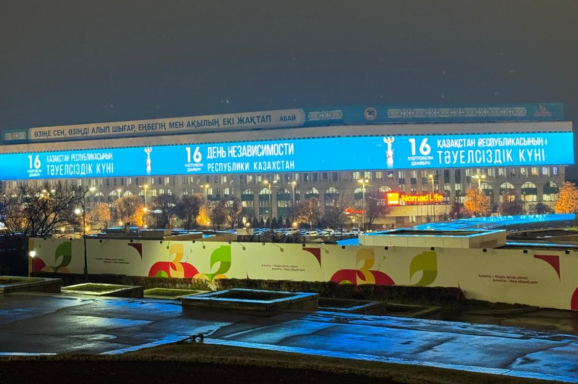 В эти дни привычный уют Алматы словно заиграл по-новому. 16 декабря в Казахстане отмечается День Независимости. В связи с этим в ЛЭД-экранах города можно увидеть красочные поздравления с приближающимся государственным праздником.